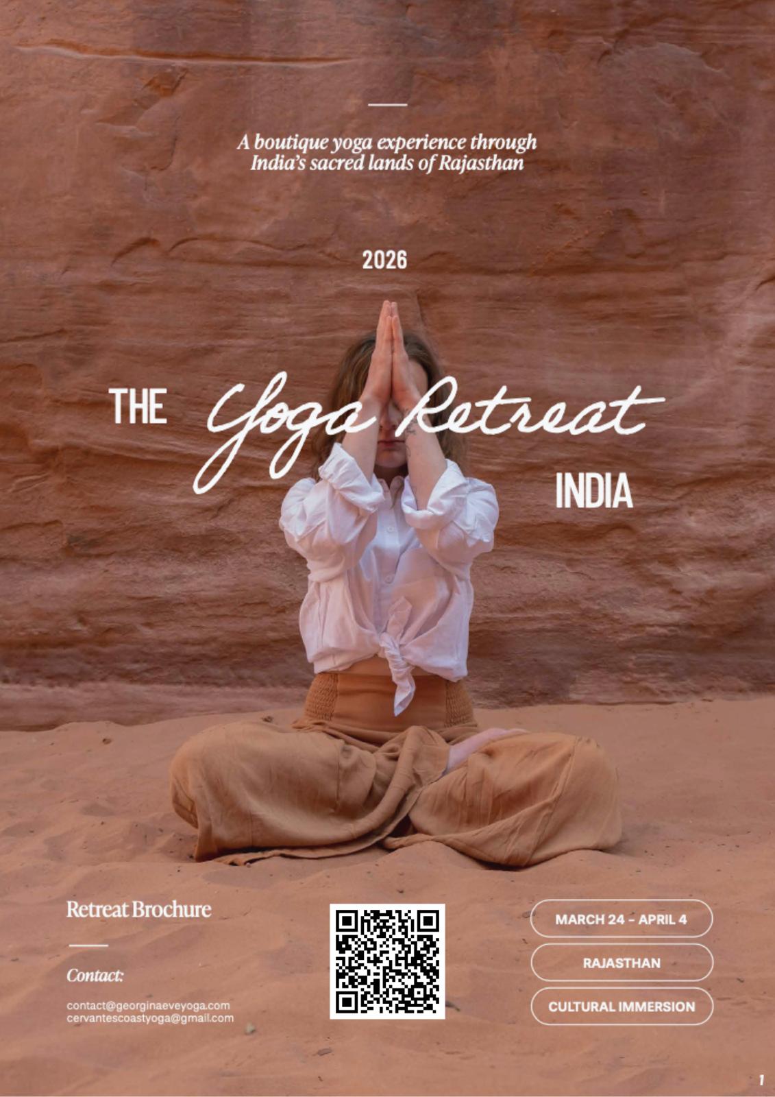 Yoga retreat and cultural immersion in Rajasthan India. See the flier linked here: Sacred Lands of Rajasthan or contact Cervantes Cost Yoga by email..